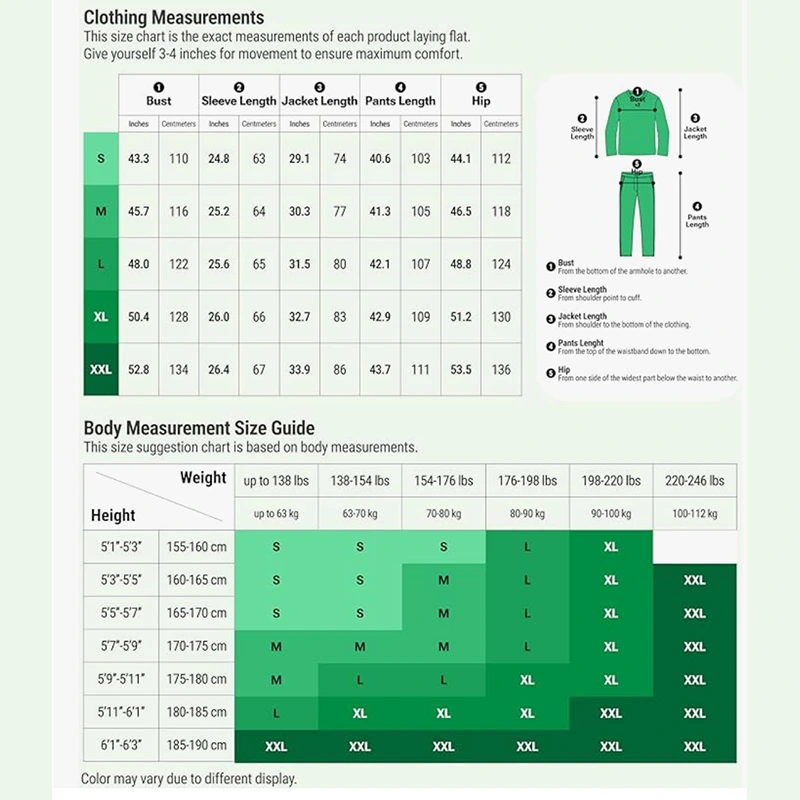 Dưới đây là biểu đồ kích thước cho trang phục ninja này cho con người.